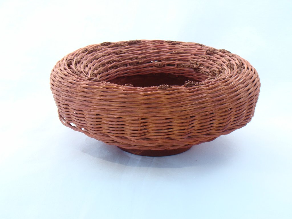 Šikovný košík v optimistických teplých tónoch s praktickým úložným použitím, v dvojstenovom výplete.
