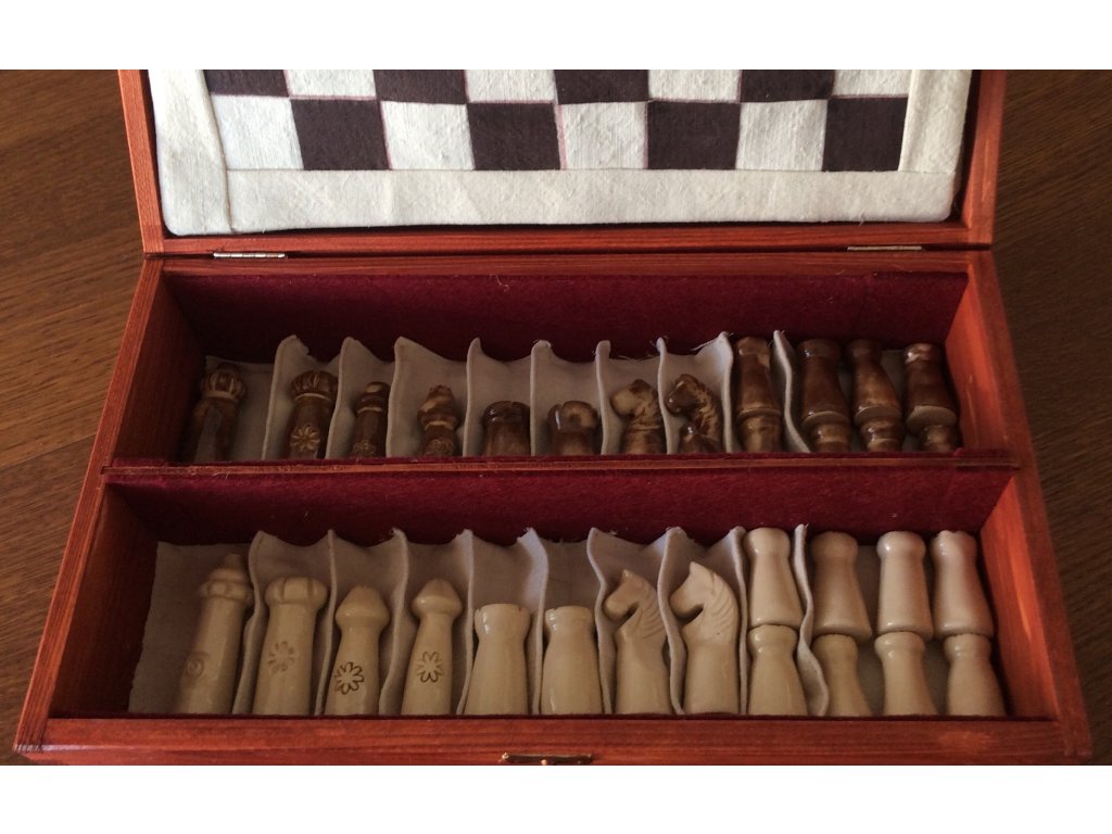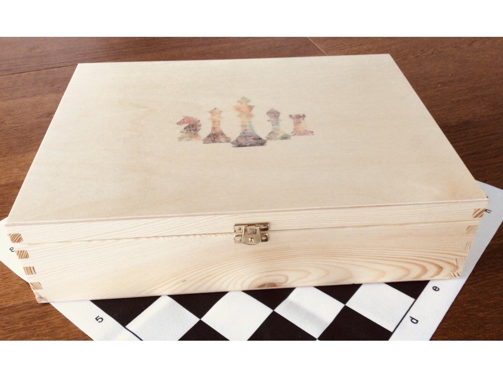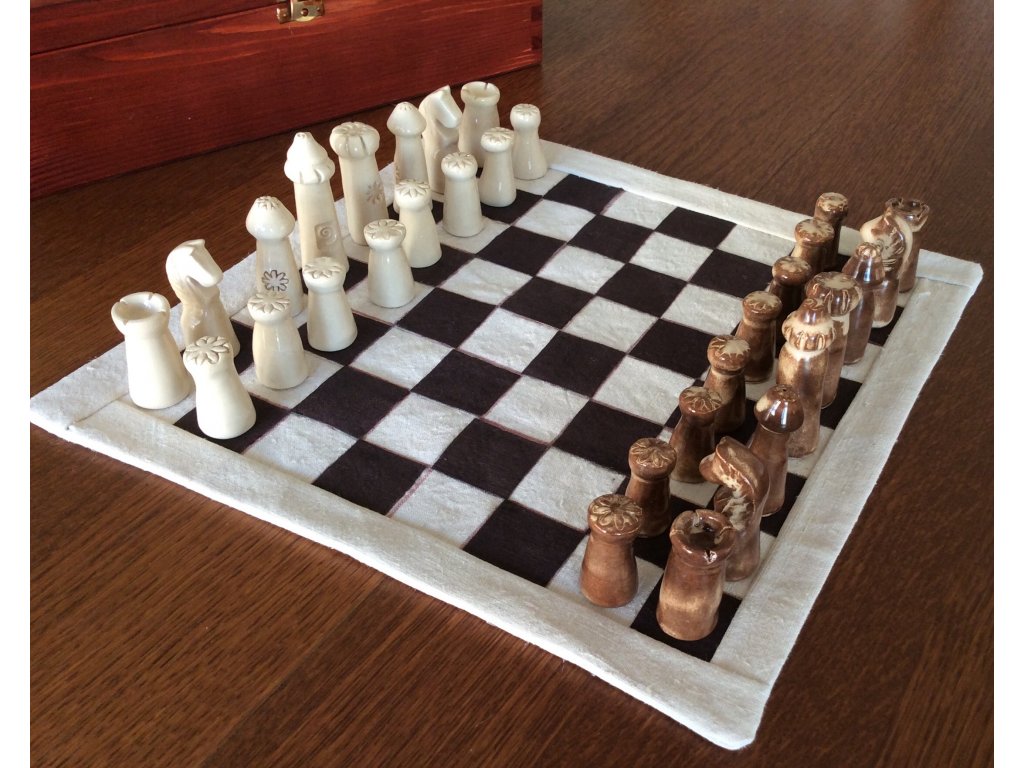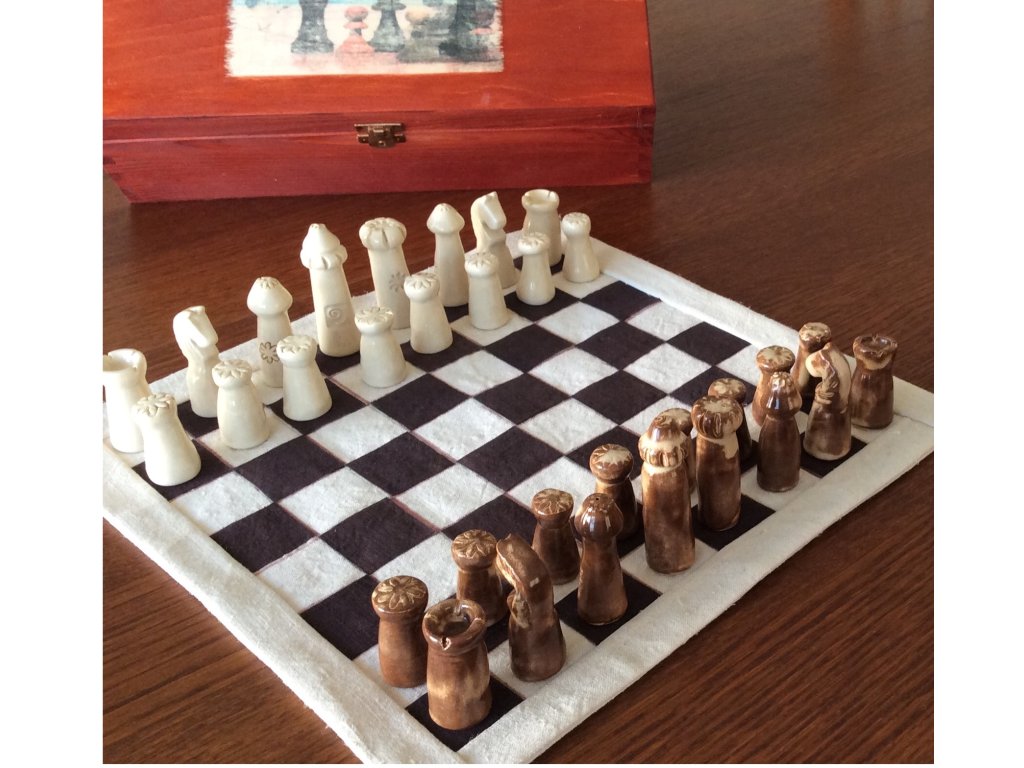 Keramické figúrky akurát tak do ruky, ani veľké, ani malé. Drevená kazeta namorená červenou švédskou, koláž vytvorená originálnou technikou. Nechýba šachovnica ušitá z ručne tkanej ľanovej látky. Predstavujem vám moju viac než mesačnú prácu, dielko vytvorené s nevšednou radosťou a kreativitou.